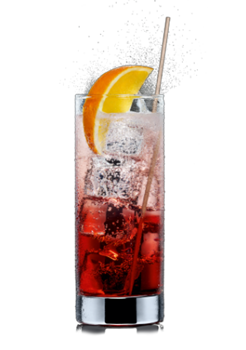 “Gay estate agent” 50ml Campari, 25ml Gordons gin, orange slice, soda water, ice.